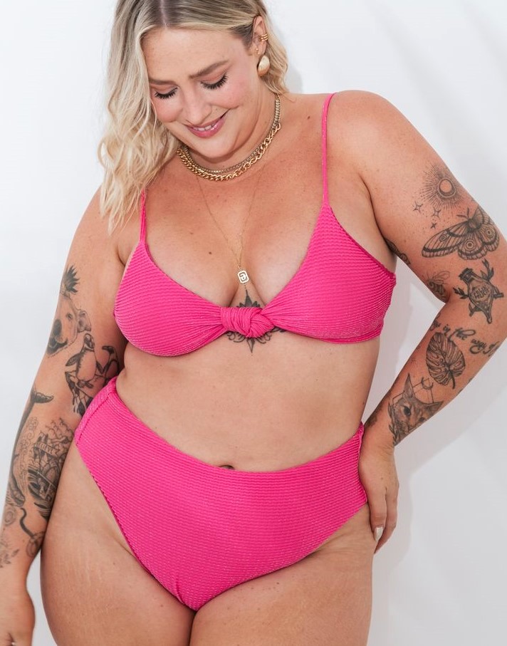 O modelo conta com um tecido maravilhoso, é uma super microfibra de poliamida com elastano LYCRA®️ . Apresenta uma textura diferenciada com efeito enrugado, além do brilho e um toque sedoso, proporcionando ao produto final sofisticação e glamour.